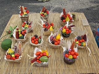 道路沿いには、近隣の農家の方が収穫した野菜やお花が売られていました