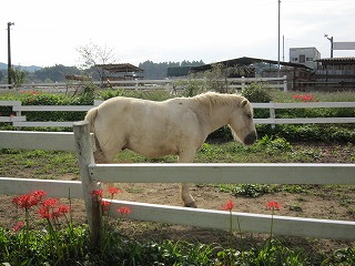 巾着田公園の隣に白馬発見!!