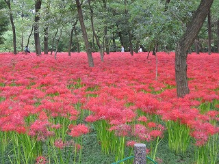 本当は和名はヒガンバナなので、曼珠沙華のほうが別名なのですが、巾着田では曼珠沙華と言っているのはそういう意味からなのでしょうか?