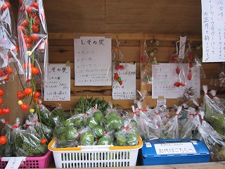 道路沿いには、近隣の農家の方が収穫した野菜やお花が売られていました